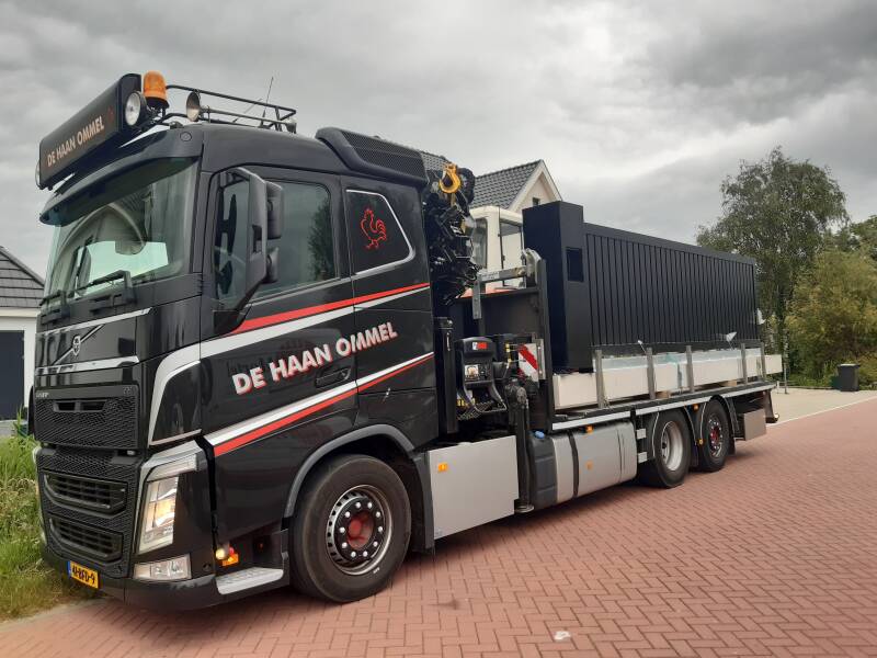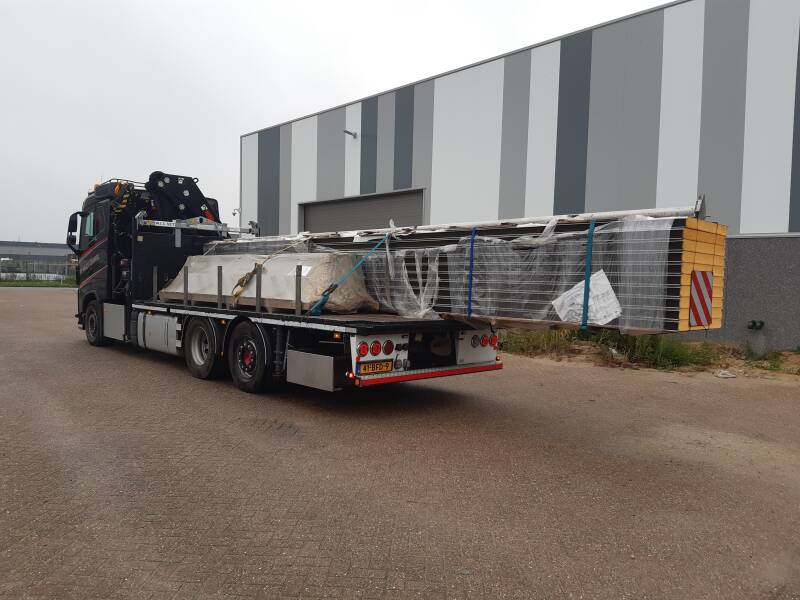 Het voordeel hierbij is dat we met de autolaadkraan zelf kunnen laden en lossen zodat er geen heftruck of kraan nodig is.